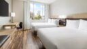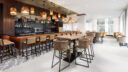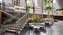 The design, characterized by modern, distinct and authentic themes, restored the original exterior and reimagined the entrance with a free form trellised canopy inspired by local palms. The ground floor features essential hotel public and administrative spaces and a boutique coffee shop, with locally inspired design elements including custom wood artwork by local artists and basket-weave inspired furniture. A redesigned lower-level courtyard with meeting rooms and a speakeasy bar transformed a former office food court into a publicly accessible urban oasis. This key indoor/outdoor element creates a climate-appropriate breakout and event space right off the street, drawing locals and business travelers in. The public area of the hotel is further enhanced by upgrading the hotel dining amenity into a destination restaurant and cocktail bar.